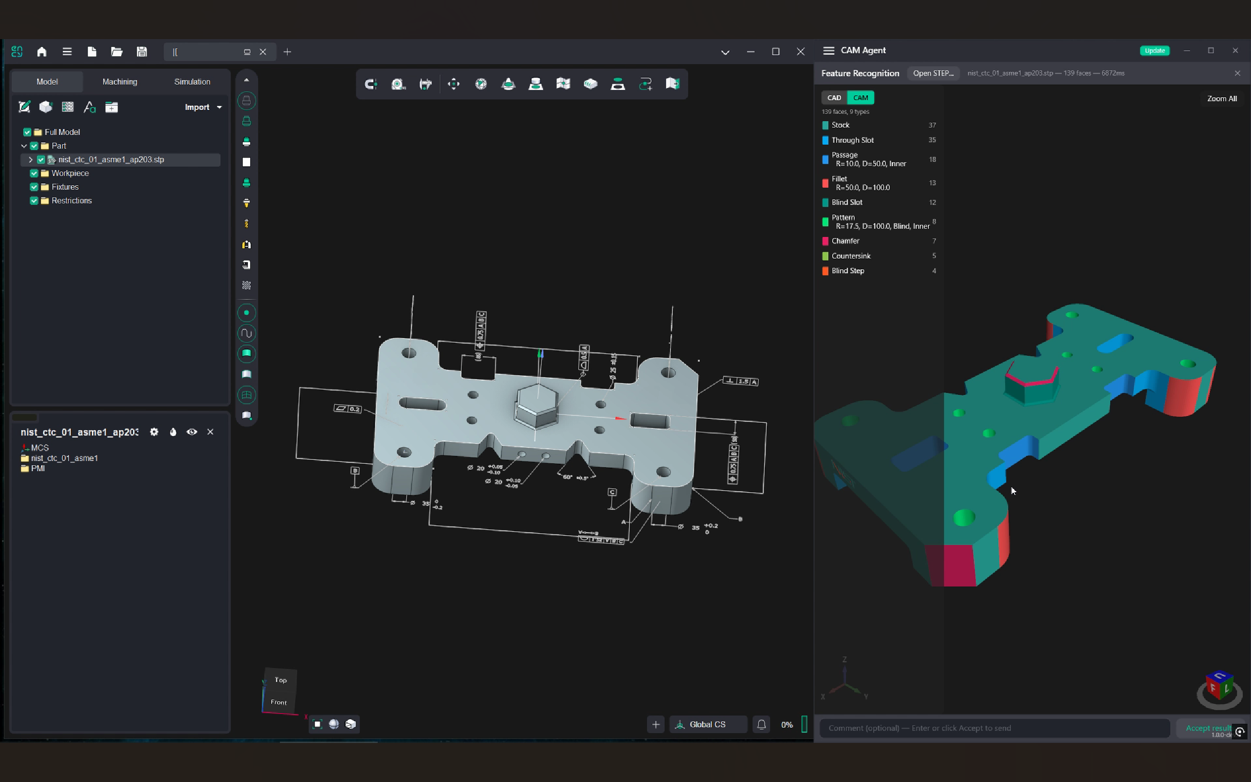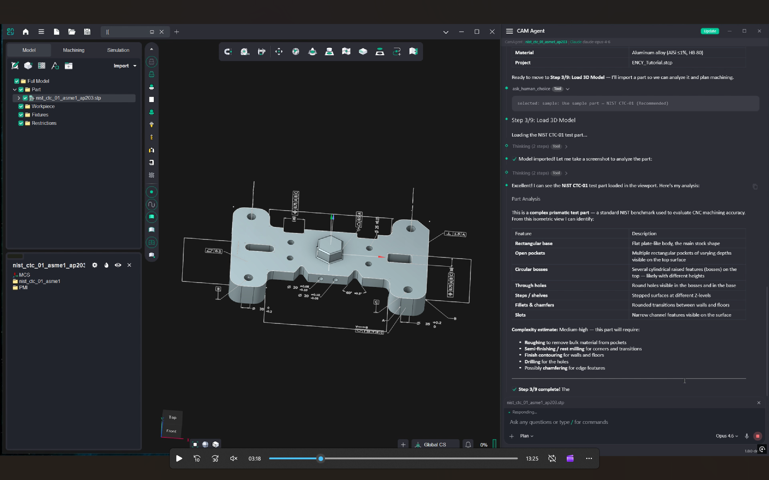 One of the two core scenarios is working with a 3D model. A user uploads a model and assigns a task, and AI Superagent approaches the part like a technologist: it develops a machining strategy, determines how to implement it in ENCY, creates operations, adjusts parameters, runs calculations, checks simulation results, and refines the outcome when needed.